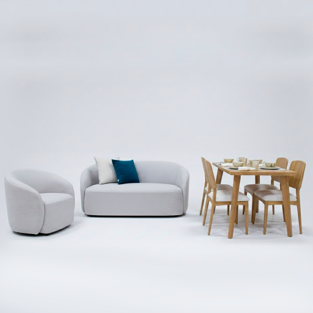 La Sala Aris combina diseño contemporáneo y comodidad en cada detalle. Su sofá de líneas suaves y la poltrona giratoria envolvente crean un conjunto armónico, ideal para espacios modernos que buscan equilibrio entre estilo y bienestar.