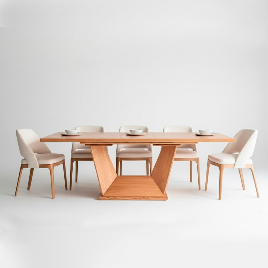El Comedor Élite inspirado en el estilo moderno, se caracteriza principalmente por su diseño extensible que permite ampliar o reducir su mesa. Fabricado con una madera Flor morado con chapilla que aporta fuerza y resistencia, gracias a sus acabados y texturas. Creará un ambiente armónico en los diferentes espacios de tu hogar.
