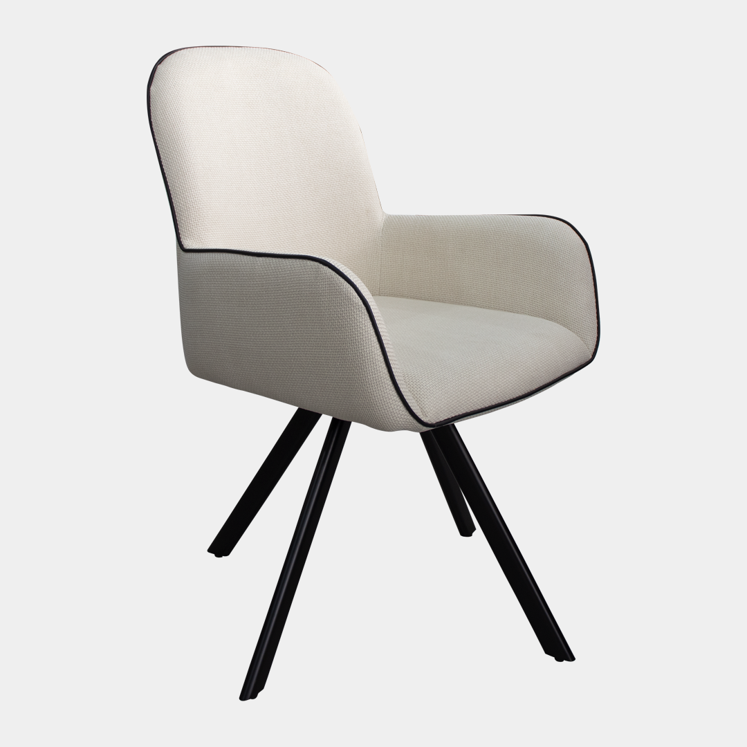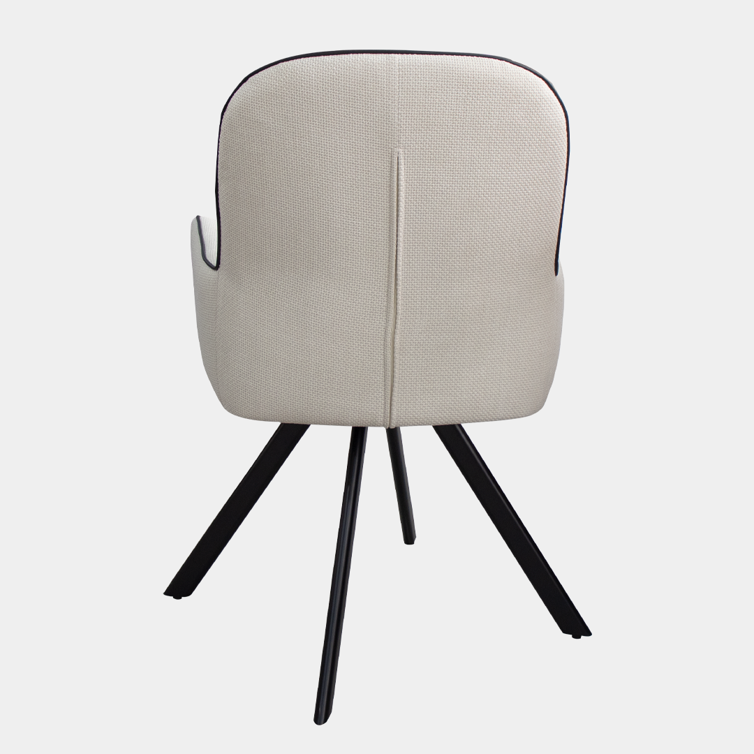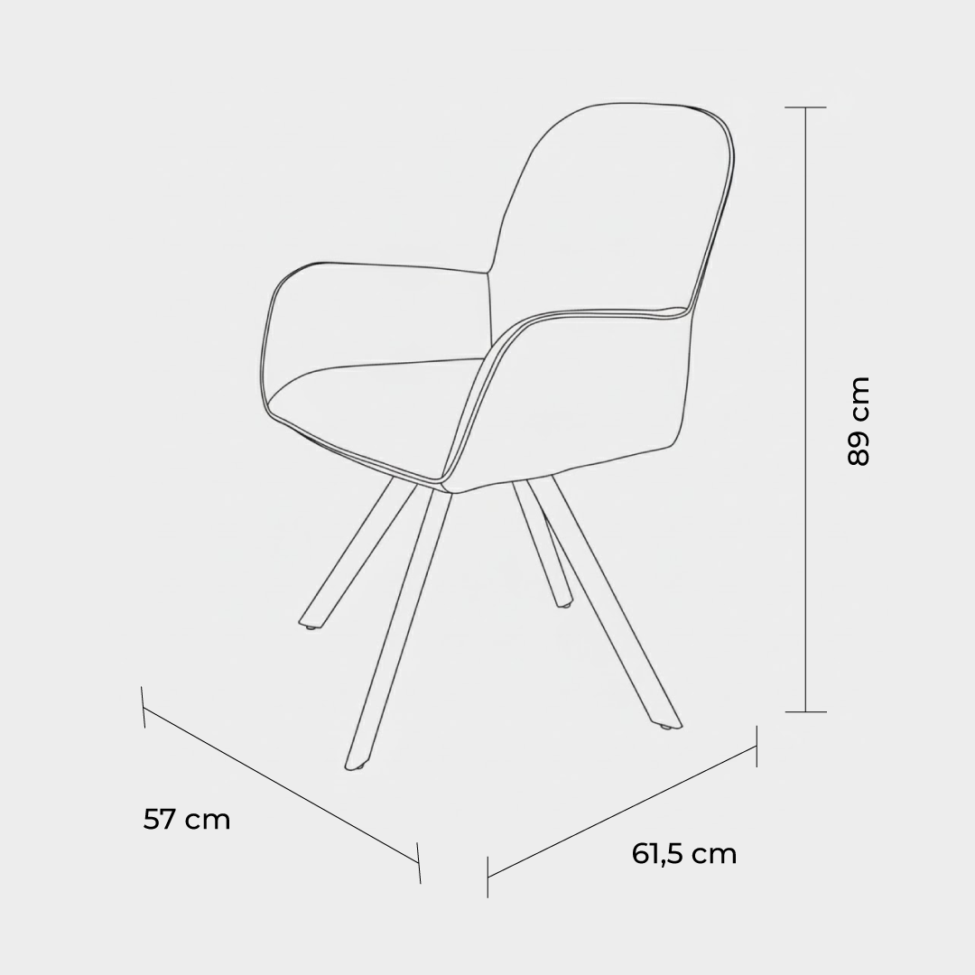 Diseñada para combinar confort y estilo, esta silla de comedor giratoria destaca por su tapizado en tono beige que aporta elegancia y calidez a cualquier espacio. Su estructura metálica con base en forma de estrella garantiza estabilidad y durabilidad, mientras que su sistema giratorio ofrece practicidad y movimiento sin perder sofisticación.