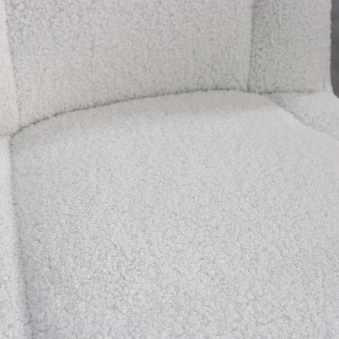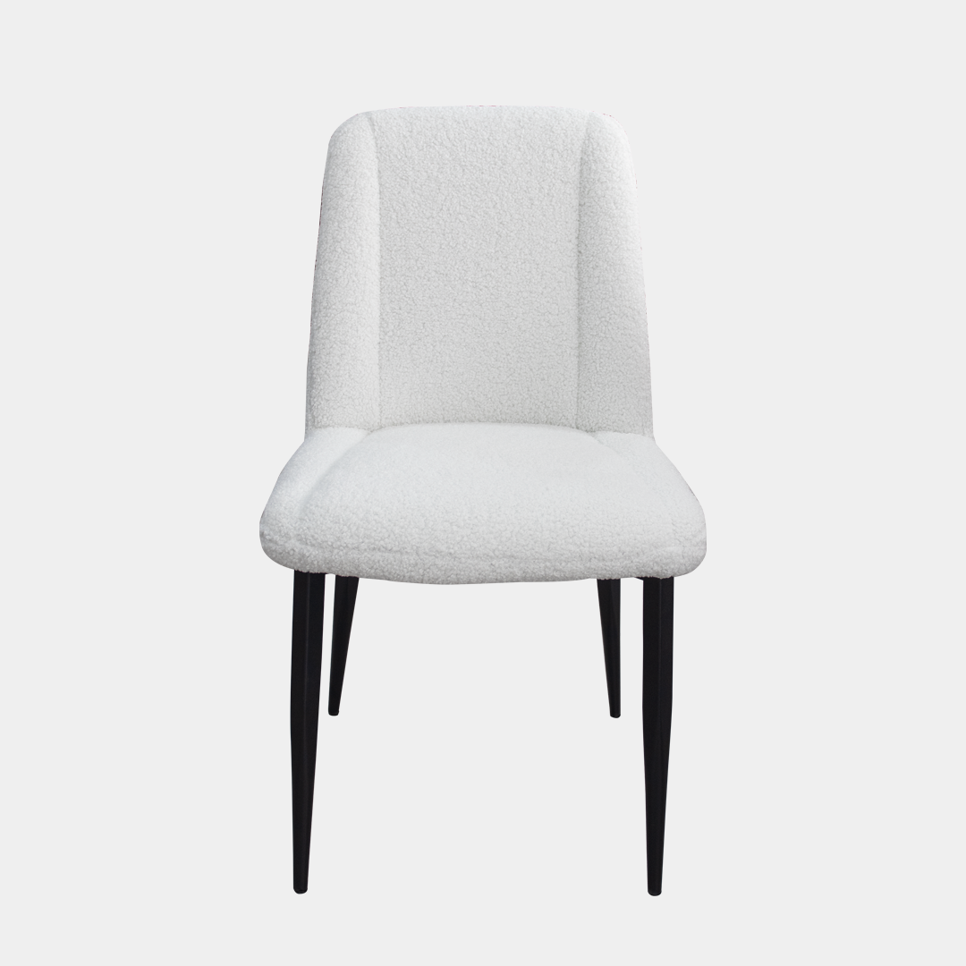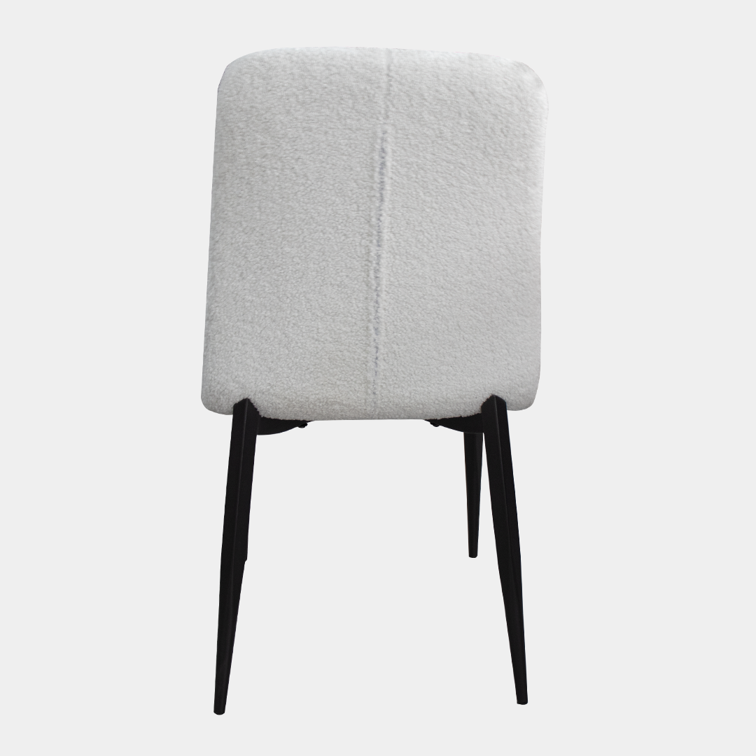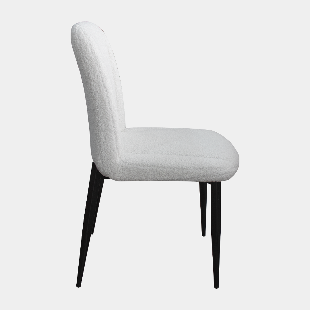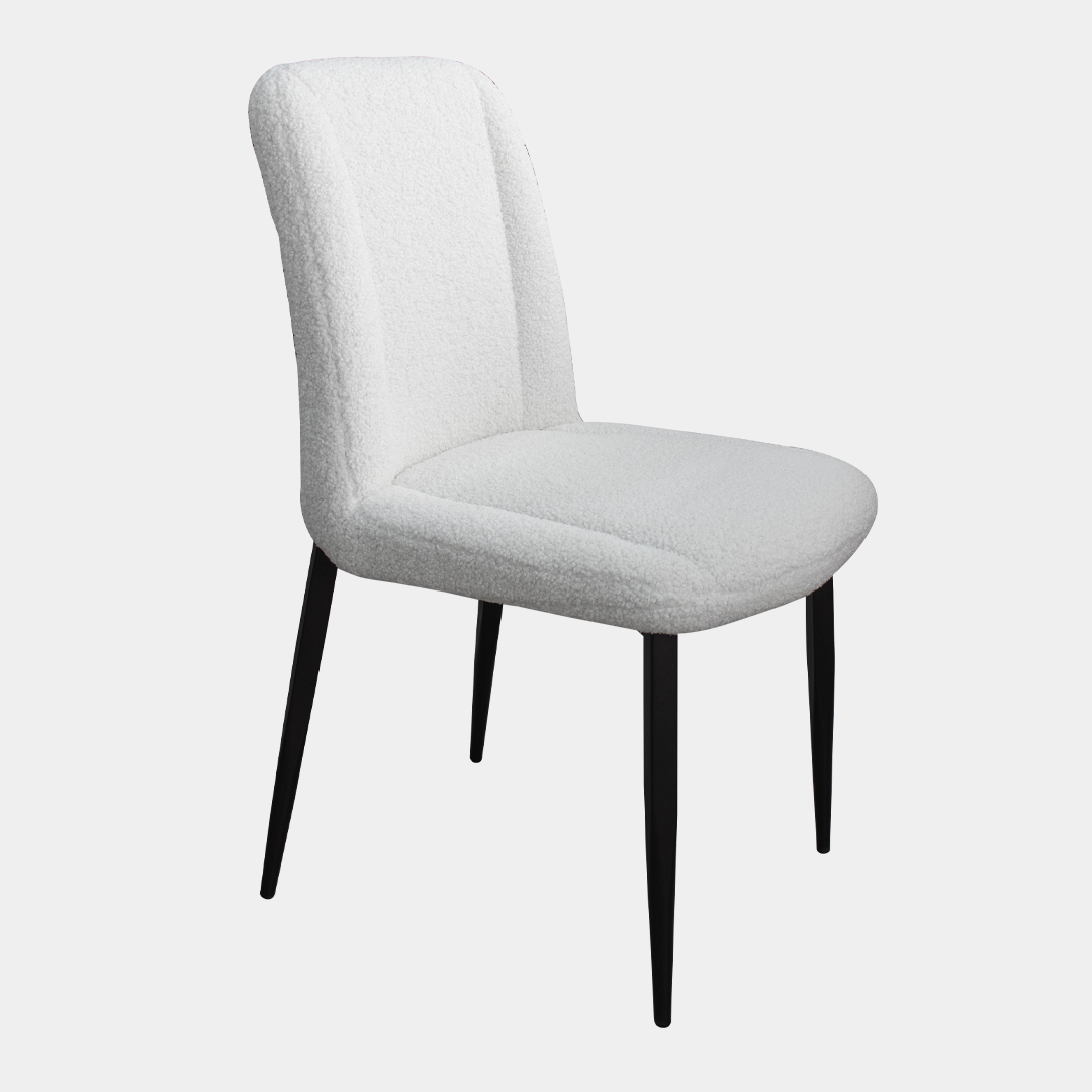 La Silla Blanca con Textura Ovejera combina el confort de su tapizado tipo ovejera —de tacto cálido y acogedor— con la firmeza de una estructura metálica en acabado negro. Su diseño ergonómico y líneas contemporáneas la convierten en una opción perfecta para comedores, salas auxiliares o rincones de diseño moderno.