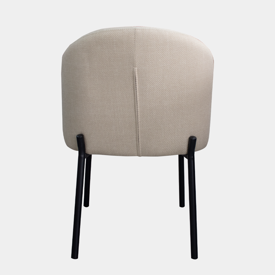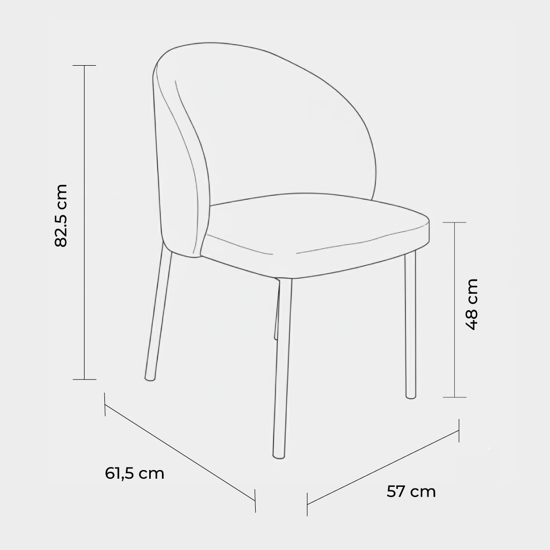 Tapizada en una tela de textura suave y resistente, y con patas metálicas de acabado negro mate, la Dalia destaca por su estilo contemporáneo y su versatilidad para adaptarse a comedores, estudios o espacios de trabajo con un toque sofisticado.