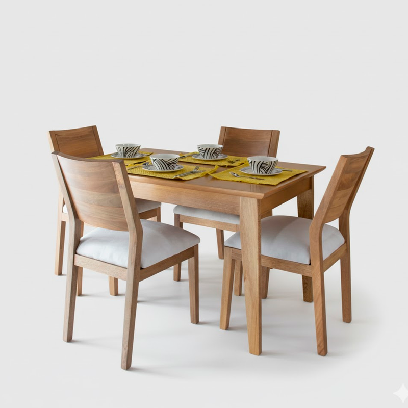 Renueva tu comedor con nuestro set de comedor de 4 puestos en madera, perfecto para compartir momentos inolvidables con tu familia y amigos.