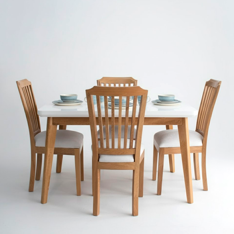 Dale un toque sofisticado a tu hogar con este comedor moderno de 4 puestos, elaborado en resistente madera flor morado que destaca por su veta elegante y tono cálido. Su tapa marmolizada, con acabado en pintura poliuretano de alto brillo, simula la belleza del mármol con un estilo contemporáneo y fácil de limpiar. Ideal para espacios modernos que buscan un equilibrio entre diseño, funcionalidad y durabilidad. Perfecto para compartir momentos especiales con estilo.