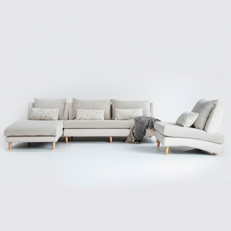 Sala creada por diseñadores italianos pensando en espacios modernos, su combinación de telas hacen de este una pieza versátil está diseñada para ofrecer un espacio elegante y acogedor.
