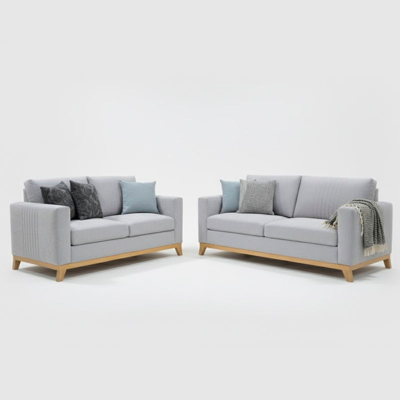 Con un diseño imponente y moderno la sala Eskoda es cómoda y elegante. Está fabricado con respaldo, brazos, asiento y patas con una firme estructura de madera perillo y tapizado con espumas indeformables y telas de alta calidad y resistencia, permitiendo exaltar la belleza de los espacios de tu hogar