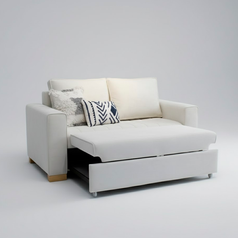 Sofá cama moderno de 140 x 185 cm ,medida interna, ideal para apartamentos pequeños, salas modernas y habitaciones de huéspedes. Su diseño contemporáneo combina líneas elegantes con un tapizado suave y duradero, fácil de limpiar y mantener. Cuenta con acolchado de espuma de alta densidad que garantiza un máximo confort tanto al sentarse como al dormir. Gracias a su mecanismo de apertura rápida, se convierte en cama en segundos, siendo perfecto para ahorrar espacio y recibir visitas. Un mueble funcional, elegante y versátil que se adapta a cualquier decoración moderna."