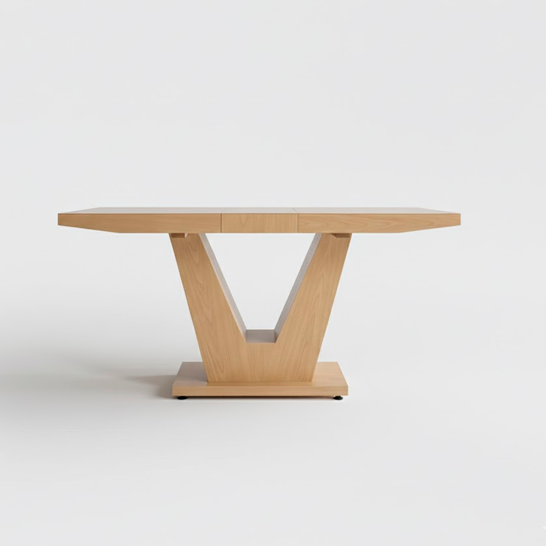Sistema de extensión tipo corredera que amplia la mesa en el centro dando espacio para sacar la extensión, Este sistema cuenta con seguro en su inferior para dejar fija la mesa ya sea extendida o sin extender.